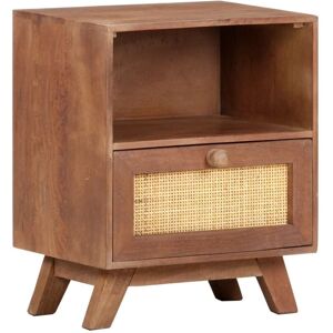 This antique-style wooden bedside cabinet exudes a vintage charm and will make a timeless addition to your interior. This nightstand is made of solid mango wood, which is a hardwood with dense grains. Rough mango wood on the one hand has the strength to bear the weight, on the other hand stands the wear and tear of time. Therefore this beautifully-designed bedroom cabinet is stable, durable and eye-catching. The perfect craftsmanship guarantees that every step of the process is carried out with the greatest care, be it polishing and lacquering. Besides, this cabinet with door could provide ample space for storing your notepads, books, and various other items. Important note: The colours and grains vary from piece to piece, making each piece unique. The delivery is random, ensuring the exclusivity and individuality of your product. Material: Solid mango wood with a honey finish and iron tube legs Dimensions: 40 x 30 x 50 cm (W x D x H) Polished and lacquered With 1 door SKU: 247942 EU