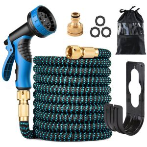 Space saving The length of the 3 times expansion pipe is 5m in the unused state. After opening the water hose, the hose quickly expands 15m and automatically retracts to its original length after irrigation is completed. Multi-mode The spray gun matching water sprayer has 10 kinds of water spray switches, which can be adjusted freely by rotating clockwise or counterclockwise, and with a valve of flow to adjust the water flow. The metal ring keeps the water gun on, then the button can be used to adjust the maximum water output Protection The hose is made of durable latex, which won't leak or split. not easily broken, and has a long service life. The polyester fabric is wrapped on the outside to prevent the water hose from rubbing directly against the ground and causing a break. Multi-purposeYou can use it to do a lot of things, such as: watering flowers, lawn, washing the car, and even bathing your pets [Notes] When not in use, please turn off the power first. water, then press the