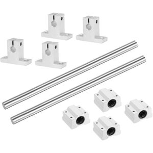 Specification: Rail Guide Total Size: 8mm x 150mm; SK8 Rail Support Size: 33 x 42 x 15 mm/1.3 x 1.7 x 0.6 inch (LxWxH); SCS8UU Ball Bearings Size: 30 x 35 x 22 mm/1.2 x 1.4 x 0.9 inch (LxWxH) Material: The linear motion rod shaft guide set is manufactured from aluminum alloy and carbon steel materials to strength, durability, and smooth operation, and the precise design ensures reliable linear motion. Linear Motion System: The linear motion rail shaft slide guide offers stable support and precise linear movement with the help of the bearings and rail support, bearings smooth gliding and rail supports provide sturdy vertical support, ensuring safe operation and maintaining accurate positioning. Easy to Use: Install the linear motion rail shaft onto the appropriate structure or framework using the provided mounting holes, and then attach the SCS8UU ball bearings and SK8 rail support to the moving parts of your CNC machine or 3D printer. that the slider blocks slide smoothly along the
