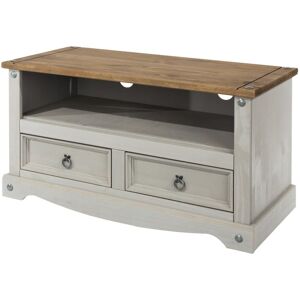 A practically sized flat screen TV unit made in pine with a choice of waxed finishes and matching metal hardware. The shaped skirt and moulding create the classic Mexican styling. There are 2 dovetailed drawers for storing all your cables and remotes away tidily and a large open area for your set top boxes and games consoles. Open access at the back helps with wiring needs. Core Products Corona Flat Screen Tv Unit in Light Brown