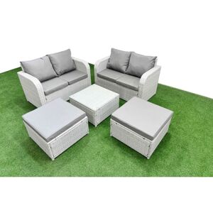 This deluxe Garden furniture set adds decoration to your courtyard, deck, backyard, porch, and even swimming pool, using high quality PE rattan and durable galvanized steel construction, which can withstand the bad weather in the UK and can be easily combined into different configurations according to your needs at any time. Set Dimensions: • 2 x Love Sofa Size: 124W x 67D x 79H cm •2 x Big footstool :65L x 65W x 34H cm • 1 x Square Coffee Table :65L x 65W x 34H cm Light grey PE rattan with dark grey fabric .Color may some difference due to light or monitor .we are unable to return the item due to color problem . Items Comes Flat Packed And Easy Assemble,Sturdy Galvanized Steel Tube Metal Frames With Powder Coating To Prevent The Rust Flat PE Rattan Completely Made By Hand, 5mm Thickness transparent Tempered Glass With Sucker On Surface To Prevent Sliding Low Maintenance ,Removable Cushion Cover And Easy Move To Different Place.Pls Keep the Cushion Indoor Or put on With Rain Cover
