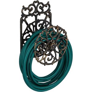 This hose holder is a practical helper for any garden! Reeling and unreeling your garden hose with the freestanding holder makes life a lot easier. This way it won’t kink and is always quickly at hand. The imposing wheel on the front immediately catches the eye and can be turned in both directions. This solid cast iron reel with floral ornaments is a real nostalgic eye-catcher. Hose Holder Details - Total size H x W x D: app. 34 x 23 x 18 cm - Width of hose rack: app. 12.5 cm - Wheel diameter: 23 cm - Capacity: app. 10 kg - Weight: app. 2.75 kg - Material: Cast iron Wall-Mounted Hose Holder - Compact holder with decorative design - Hose always close at hand and does not kink - Mount to a wall surface & ensure order - Can be turned in both directions - Cast iron - For garden, shed, garage etc. Included in Delivery - 1 x Water Hose Reel in Pieces - Illustrated instructions - Decorative items and shown in product photos and mounting materials are not included