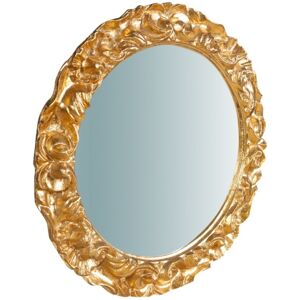 W40xDP3XH40 cm sized wood made antiqued gold leaf finish wall mirror Carefully worked and finished by old Florentine craftsmen Easy application to enrich and furnish any living solution. Already fitted with hooks for fixing to the wall Entirely made in Italy article All measurements refer to the maximum size of the article