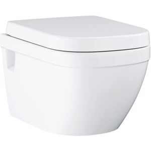 GENERAL DESCRIPTION The Grohe Euro Ceramic Wall Hung WC is a modern toilet designed for concealed cistern installation. It features a rimless design and a horizontal outlet, providing efficient flushing with a volume of 3/5 liters. TECHNICAL SPECIFICATIONS Product range: Euro Ceramic Colour: White Material: Porcelain Manufacturer colouring: Alpine white Length: 55.9 cm Width: 36.2 cm Height: 38.5 cm Toilet bowl: Rimless Weight: 27.00 kg Depth: 55.9 cm Bowl colour: White Product type: Toilet COMPATIBILITY AND ACCESSORIES Compatible with seat and cover models 39 330 001 (soft close) and 39 331 001 (without soft close). OTHER INFORMATION Includes a 2-year constructor warranty.