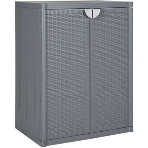 This garden storage cabinet is perfect for keeping your outdoor furniture cushions, gardening supplies, pool towels, and other items organised and easily accessible. Durable material: PE rattan, also known as poly rattan, is a strong, low-maintenance synthetic material that looks like natural rattan. It's lightweight, easy to clean, and commonly used for outdoor furniture due to its durability and weather-resistant properties.Ample storage space: This outdoor storage cabinet has a large space to store your garden tools, pool toys, outdoor cushions, and more.Robust and stable frame: The powder-coated steel frame ensures the garden furniture is strong and stable for daily outdoor use. Practical door: The door is equipped with a stainless steel door knob and a magnet for easy opening and closing. WarningTo prevent it being overturned, this product must be used with the provided wall attachment device. Good to know:To make sure your outdoor furniture stays beautiful, we recommend