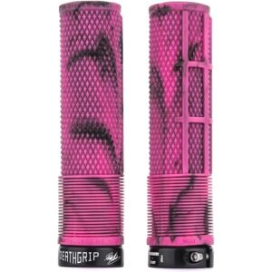 TheDMR Brendog Death Grip has been designed in collaboration with professional DH rider Brendan Fairclough, with the aim of creating a single lock grip that can be held all the way down to the end, making it ideal for just about any discipline! Made from a super-soft Kraton compound the unique design has five key features, the classic knurl pattern provides a great all-weather grip surface for your palm, while the waffle section helps with fatigued hands, specifically in wet weather and when you're pulling back on big gaps. A soft and mallelable mushroom pattern has been implemented on the inner side for your thumb to sit on, this comfy section helps prevent thumb blisters after a long riding session! The DMR Death Grips come complete with a durable, closed end & a flange at the near side! DMR Brendog Death GripFeatures Soft Kraton compound for durable, all-weather grip Single Lock design Flange Closed end for crash protection Knurl, Waffle & Mushroom pattern combine to create a versatile grip design that helps reduce fatigue and blistering while improving grip.