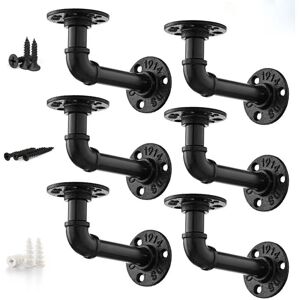 【Practical and Stylish】Shelf brackets can be used as both a shelf bracket and a hanging bracket, giving you much more space and the rustic vintage style tubular shelves are very well made and look very stylish, they will match any decoration perfectly. 【Easy to Install】The shelf bracket is easy to install 4 wall brackets and mounting hardware are included in each package. The black shelf brackets parts can be assembled directly, but when you mount the assembled shelf brackets on the wall or wooden board, you need to punch the wall/board and install the vintage shelf bracket with screws. 【Space Saving】These durable, sturdy and versatile wall shelves give you much more space and make your home cleaner and tidier. Use these shelf brackets to display your photos, books, collectibles, CDs, trophies, awards, keepsakes, wine bottles, cups and flowers. At the same time, they can add an artistic atmosphere to your home. 【Sturdy and Durable】The floating shelf brackets are all made of high