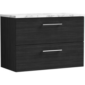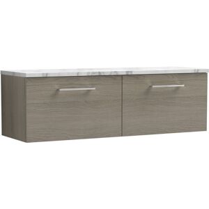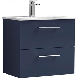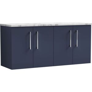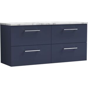 The twin Arno vanity unit effortlessly showcases the clever design, allowing greater storage space by seamlessly doubling up on the popular 600mm version. This beautifully-designed cabinet comes in a variety of contemporary colours, with the option to switch out the handles to match taps and other accent colours in your bathroom. Features and Benefits: Modern vanity unit design with vast array of customisations available Midnight Blue satin finish - an unmissable dark blue shade Includes laminate countertop in Carrera Marble - a light Italian marble effect finish 2-drawer configuration, featuring soft-closing action for premium feel Supplied with chrome D-handles (192mm centres) as standard Cabinet constructed from 16mm MFC with 18mm MDF fascias (door/drawer fronts) Vanity unit supplied rigid - no assembly required on the carcass/cabinet Unit includes pre-drilled blind holes for installation of handles (supplied loose) Unit constructed using FSC certified materials Compatible with