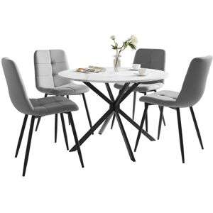 Unlock the perfect blend of style and practicality with our concrete-effect MDF dining table (18mm thick for premium durability) and chic metal chairs. This set masters the art of British living: fold one side of the table seamlessly against the wall for a space-saving semi-circle desk or cosy breakfast spot, then unfurl it in seconds into a full 100cm round table – ready to host Sunday roasts for six. The ergonomic faux leather chairs (wipe-clean check pattern!) offer plush support on sleek metal legs, marrying comfort with minimalist design. No space wasted, no compromise on style: entertain effortlessly, live smartly. Assembly? Simple. Life upgrade? Guaranteed. Your compact home deserves big possibilities. George Oliver Chair Colour: Black, Table Top Colour: White