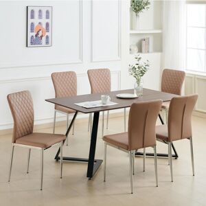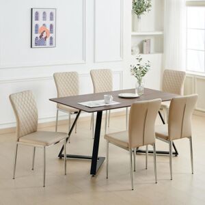 New design, market exclusive design! Comfortable padding and slightly reclining backrest ensure very comfortable even when sitting for a long time. The seats and backrests are equipped with decorative stitching, which perfectly complements the overall appearance of these tables and chairs. Due to the central design, these kitchen chairs are almost suitable for any layout style and always attract attention. Modern, practical and comfortable, these chairs will easily meet all your requirements. Product information: Multi-functional - chairs can not only be placed in the kitchen and dining room. And in the bar. a living room. Cafe, etc. Comfortable - comfortable padding. The surface is easy to maintain and clean. Stability - The chair is more stable and durable. Ergonomics - Because of the ergonomic shape, you can sit for a long time. The shape of the backrest slightly tilted back is not only elegant, but also comfortable. Safety - Protect the plastic tip of the floor. Technical data: