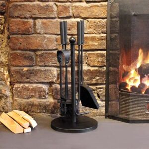 Keep on top of your fire with this 5pc Companion Set! Made from Cast Iron, this set is a great addition to any home that has a wood burning fire, complimenting any open fireplace. It has everything you need, from a brush to sweep up the ash or tongs to handle hot items. This Victorian Style set will look great standing next to your open fire, giving off a traditional vibe as well as having an aged look. This set includes a poker, a tong, a shovel, a brush and a classy stand, which has a round base this has been made to be a sturdy design and durable build. Set Includes: - A Poker - A Tong - A Shovel - Stand