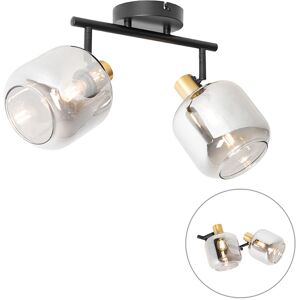 QAZQA Ceiling Spotlight Black with Gold and Smoke Glass 2-Light - Zuzanna A striking yet timeless ceiling spotlight, this is Zuzanna. It is beautifully finished with a black fixture and two smoke glass shades that create a truly atmospheric light in the room. It is the perfect ceiling spotlight in the bedroom, in the hallway or in the living room as an atmospheric lamp. The spotlights can be tilted independently of each other, so you can easily direct the light wherever you want. It has a height of 31 cm and a length of 56 cm. The mounting plate has a diameter of 12 cm. You can complete your Zuzanna with two E14 light sources (max. 25W). Please note that you need to order these separately. The spotlight is also dimmable with an external dimmer. Go for real atmosphere at home or in the office with our Zuzanna spotlight! Bulb holder: E14 . Max 2 x 25 W, 230 V Suitable for: LED Connecting voltage: 220V/230V Protection class: IP20 Dimmable, dimmer not included,No, without cord and plug