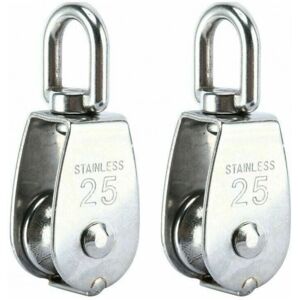 【Premium Material】304 stainless steel makes it sturdy, anti-rust, wear-resistant and corrosion-resistant with high strength structure. 【360 Degree Swivel Ring】2pcs M25 Single Pulley Block with smooth rotating wheel, 360 degree rotation to prevent rope/cable/wire from tangling for your convenient use. 【Small Size Big Capacity】Stainless Steel Wheel: 0.98''/25mm x 0.43''/11mm (D x W), Eye Diameter: 15mm/0.59", Total Height: 85mm/3.35". Maximum Loading Capacity: 150kg(331lbs). Flexible sliding pulley with high load capacity. 【For indoor and outdoor】Use with indoor and outdoor rope or cord for flexible sliding pulley. Easy installation for large kayaks, canoes, factories, construction, shipping, mining, household. Perfect for garage, machine loading, curtain, clothesline, dog pulley system etc. 【Package Included】2pcs x M25 Single Pulley Block Note: This does not include other things, the color is based on the first picture, and the other pictures only show the effect Due to the differences