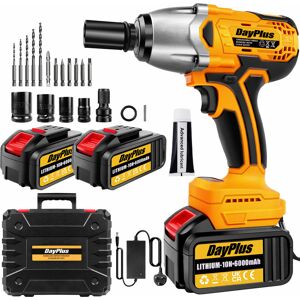 Dayplus - 1800Nm Cordless Electric Impact Wrench 1/2'' High Power Driver +2 Li-ion Battery