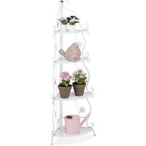 This small metal flower stand with 3 tiers provides the necessary space to present your plants decoratively. Colourful petals, herbs and other plants can be ideally highlighted this way. With its romantic design, curved shapes and leaf ornaments, the etagere is also very eye-catching by itself. The rack is suitable for in- and outdoor use and oozes a vintage charm in your flat, on your balcony or patio. Flower Stand Details - Height: app. 40 cm - Length per side: app. 21 cm - Size folded: H x W x D: app. 40 x 21.5 x 15 cm - Weight: app. 1 kg - Material: Powder-coated iron - Colour: white Plant Rack Dimensions - Shelves in 3 heights: app. 11, 23 and 35 cm - Internal diameter of each shelf: app. 14.5 cm - Maximum capacity per tier: app. 5 kg Decorative Vintage-Style Flower Etagere - Present flowers, herbs and more in style - Swivel shelves can be flexibly positioned - Eye-catcher on patio, balcony or indoors - Curved design with leaf ornaments - Robust and weatherproof thanks to