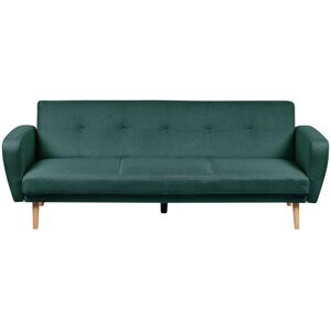 Upholstered 3 Seater. A straight-lined, minimalist, and most importantly, practical sofa that complements any living room or guest space. Its subdued, earthy colour palette and intricate decorative stitching lend it charm, making it a versatile furniture piece ideal for modern interiors. The sofa features a click-clack function, doubling up as an extra sleeping spot when needed. Details: Product Type: 3 Seater Sofa Style: Modern General Color: Green, Black Shade: Light Green Material Type: Fabric Main Material: Fabric Additional Material: Iron Filling Material: Foam Material Composition: 100% Polyester Arm Style: Armless Leg Caps/ Pads: Yes Reclining: No Removable Cushion Covers: No Seat Construction: Sinuous Springs Seat Foam Density: 60 kg/m3 Seats Up To: 3 People Sleeper Function: Yes Sofa Bed Open Mechanism: Click-Clack Storage: No Dimensions: Depth: 90 cm Seat Thickness: 17 cm Seat Height: 38 cm Width: 191 cm Height: 83 cm Seating Surface: 54x191 cm Sleeping Surface: 109x191 cm