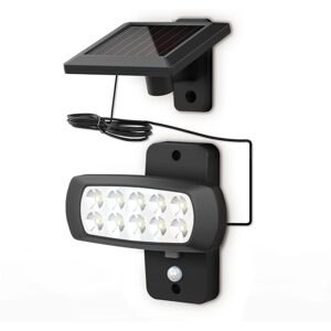 RESISTANT - weatherproof thanks to its IP44 protection rating, this LED outdoor light is equipped with a motion detector and a twilight sensor. It is ideal for long-range lighting of your outdoor areas - entrances, gardens, driveways, patios, doors or garden sheds. SOLAR - the spotlight is powered by 3 rechargeable solar batteries AA 1.2 V 600 mAh Ni-MH (included). The solar panel and the projector are connected by a waterproof 2-meter cable, so that the solar sensor can be installed independently of the projector to ensure optimal sunlight exposure. MOTION DETECTOR - the detector has a PIR motion detector with a detection angle of 90 degrees and a range of 5 to 12 meters. The optimal installation height is between 1.8 and 2.5 meters. The LED projector is adjustable and pivotable for optimal illumination of your outdoor areas. OPERATING MODES - the solar lamp offers three operating modes. 1: OFF, 2: AUTO - the battery charges during the day and the lamp switches on automatically at