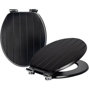 The Harbour Housewares collection of Wooden Toilet Seats offers a quick and convenient way to freshen up the look of your bathroom. Each seat has been crafted from MDF to provide a sturdy and comfortable product ideally suited to the daily demands of any modern home. The use of natural wood in preference to plastic or resin means a higher resistance to changes in temperature - something certainly worth considering when it comes to the colder months! Our seats have also been fitted with a soft close function, designed to ensure they lower gently onto the bowl. Not only does this eliminate the unpleasant sound of clattering toilet seats (parents rejoice!), but it also means your seat will last longer without the risk of cracking or chipping from repeated impact. Available in a choice of colors, the lids of these seats feature a grooved design that brings a rich modern character to any interior. Installation is easy, with all necessary fixtures and fittings provided in the box. Harbour Housewares Colour: Black