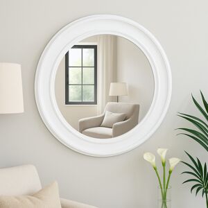 Beautiful large round vintage white wall mirror with bevelled glass for a look of luxury and vintage style. Perfect home decor display for the living room or hallway. Simple and so stylish this mirror is perfect for modern contemporary and traditional interiors. We also have many more mirrors round mirrors in a great choice of styles sizes shapes and colours. Mirrors are the best home accessory and will add a sense of light and space to a room. Shaped wooden frame in a white finish with circle bevelled mirror. Easily wall mounted with 2 D-ring hooks on the back for hanging. Our extensive range of wall and floor mirrors offer a great range of choice from the very large wall/leaner mirrors that add dramatic effect to the smaller vanity wall mounted styles perfect for bathrooms. Colour: White Finish: Painted Material(s): Wood Glass 80cm x 80cm x 4.5cm (width x height x depth) Measurements (other): Mirror surface is 59cm Fully assembled Can be wall mounted vertical