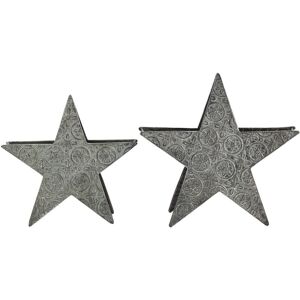 Star Shaped Tealight Holders. Decorating the entire house with festive ornaments is one of the Christmas traditions. These metal stars in two sizes will look particularly well on the large dining table on Christmas Eve, or arranged on a sideboard or a mantel. The silver matt finish of the two items matches a simple, rustic home decor. The metal stars feature small tealight stands in their centre. Details: Product Type: Candle Holder Style: Glam General Color: Silver Material Type: Metal Main Material: Iron Finish: Matt Handmade: No Dimensions: Depth: 8 cm Width: 31/26 cm Height: 30/26 cm Weight: 1 kg Offer Includes: 2 x Decorative Accessory Key Features: Well-Suited for Variety of Home Decor, Decorative Yet Functional, Elegant Design, High-Quality Materials, Multiple Applications Assembly Information: Does Not Require Assembly Maintenance tips: Metal: 1.Clean with a mild cleaner and soft cloth, wipe dry afterwards 2.To avoid scratches do not use abrasive cleaners 3.For copper or