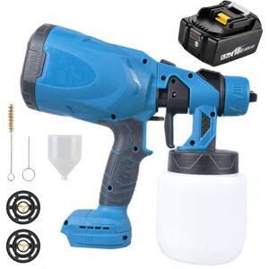 Package Included: 1xPressure Washer + 2 x 5.5A battery + 1 x charger Specifications: Name: Cordless paint sprayer Color: blue + black Material: ABS material + metal Paint supply method: suction type Nozzle caliber: 1.8 mm Spray distance: 300mm Paint spray volume: 700ml / s Spray speed: 150cc / min Container capacity: 1000 ml Features: ● Quickly cool the air inlet and heat dissipation air inlet to facilitate heat dissipation and ensure the service life of the machine ● One-key switch, safer and more convenient power supply accords with ergonomic design ● The adjustment knob can more effectively adjust the nozzle flow rate, adjust according to your own needs, and save materials ● Three spray patterns: round, vertical and horizontal. You can choose a pattern to disperse the paint in the desired way ● A wide range of applications, suitable for painting doors, windows, walls, fences, floors, ceilings, floors, cabinets, household furniture and other objects. Note: 1. Please allow 1-5cm
