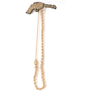 Dolce & Gabbana Men Jewel Gun Brooch.Lapel Needle.Metallic Applications.Chain With Methal Tip Cover.Composition:Real Brass:50%, Ramie:35%, Polyester:3%, Silk:2%.