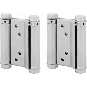 2 Pieces Double Action Hinge for Free Standing Doors, Swinging Doors, Shed Doors, Saloon and Cafe Doors, Bar Counter Doors Provide 16 screws and 1 wrecking bar Dimensions: 92mm x69mm x 18mm; Load Capacity: 7-15kg (for 2 hinges) Bearings with adjusted intensity function, to be used for a variety of materials swinging door. And comes with crowbar to adjust the bolt position. Made of high quality stainless steel, sturdy and durable For door thickness: 23mm to 25mm