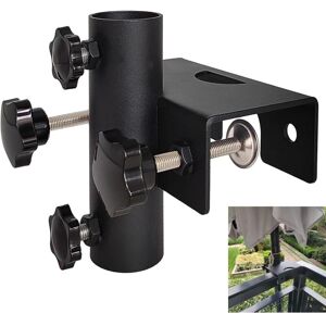 Flexible Design: This sturdy umbrella stand is suitable for 2.5-3.8cm umbrella poles of different diameters, can be firmly fixed on the balcony square railing and bench, etc. Easy Installation: The umbrella clamp can be quickly installed, the large clamp can be fixed anywhere you want, attach it to benches, fences, bleachers, tailgates, boats, poles and more, and the position can be changed arbitrarily. Durable Material: Made of heavy steel, very strong, black paint surface treatment, rust-proof, durable. Space Saving: With the accessories on the balcony railing, you can leave more space for use. Shipping Quantity: 1 piece