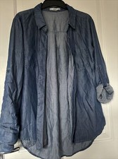 Oasis Womens Denim Long Sleeved Skater Skirt Mini Dress - Blue Cotton - Size 10 Uk