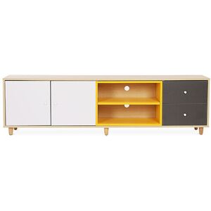 Do not miss the opportunity to take home a Scandinavian style TV cabinet at the best price. This Nordic TV cabinet is made of high density MDF, the legs are made of solid wood so they are very stable and resistant. Thanks to the multiple compartments present in this Scandinavian TV cabinet you can keep all your audiovisual devices in the same place. Elegant, practical and of great quality, this white and gray TV cabinet has it all. Dimensions : 29.8 cm x 160 cm x 45.3 cm (L x W x H)