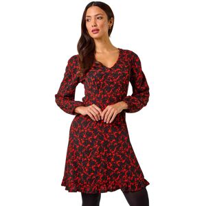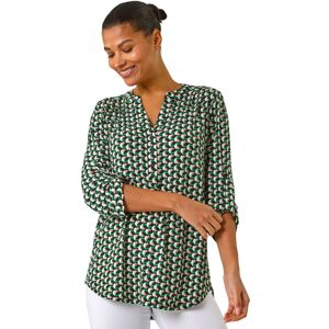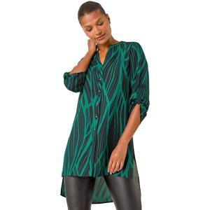 Abstract Print V-Neck Twist Midi Dress from Roman. Make a stunning statement in this abstract print midi dress. The feminine v-neckline with a twist front detail and flattering grown on cap sleeves create an elegant look. The beautiful abstract print contrasts perfectly against the soft stretch jersey fabric, ensuring comfort all day long. Falling at a midi length, this dress is ideal for any Spring Summer occasion. Style with a cardigan and wedged heels!