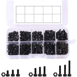 Doris Direct M3, M4, M5 Stainless Steel Hex Socket Head Cap Screw Nuts Assortment Kit are used for critical vehicle applications, machine tools, machinery, tools and dies, civil and mining engineering, and a wide range of applications engineered. Specifications: ● Material Type: Carbon Steel ● Exterior Finish: Black Oxide ● Color: Black ● Measurement System: Metric ● Size: M3 x 8mm/12mm/16mm/20mm, M4 x 8mm/12mm/16mm/20mm, M5 x 8mm/12mm/ 16mm/20mm ● Quantity: 500 pieces Package Content: ● 30pcs m3 x 8mm ● 30pcs m3 x 12mm ● 30pcs M3 x 16mm ● 30pcs M3 x 20mm ● 120pcs M3 nuts ● 20pcs M4 x 8mm ● 20pcs M4 x 12mm br/> ● 20pcs M4 x 16mm ● 20pcs M4 x 20mm ● 80pcs M4 nuts ● 15pcs M5 x 8mm ● 15pcs M5 x 12 mm ● 10 pieces M5 x 16 mm ● 10 pieces M5 x 20 mm ● 50pcs M5 nuts Belligerent: ★ The products contain small parts, please do not let children play to avoid accidental swallowing.