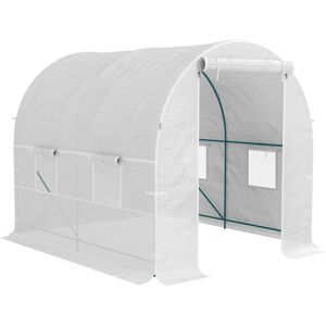 This garden polytunnel greenhouse form Outsunny is composed of durable PE cloth over a selected galvanised steel frame. Thanks to solar energy, it can maintain consistent temperatures that is ideal to plant growth. The durable PE cover protects the plants from cold, light rain and pests. The two rows windows on either side are suitable for ventilation, also they work for water gathering on rainy days. In this greenhouse, all your vegetables, flowers, fruits will flourish.Features:Poly tunnel greenhouse, ideal to extend your plants growing season no matter where you liveBuilt form galvanised steel tube frame and PE cloth in "tunnel" stylePowder coating galvanised steel frame provides a durable, stronger and corrosion resistant structureFull closed cover maintains higher humidity levels for growing tropical plants, vegetables and herbsTear-resistant cover ensure all your plants are protected from cold, light rain, birds and pestsLarge door provides easier access for gardeners to enter this greenhouseTwo rows of windows on either side for better ventilation, which can also be fastened up on rainy days for water gathering4 mesh windows for cross ventilationNote: Please put away the cover in case of heavy snow, strong wind and heavy rain