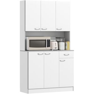 This HOMCOM pantry cupboard is an ideal solution for any kitchen. Made from MDF and with particleboard reinforced backboards, it is ideal for storing all your kitchen items from accessories, utensils, dry good and even your cookbooks. The free standing kitchen unit has 4 doors with 3 adjustable shelves for you to position as required. The door handles and knobs are having a brushed nickel finish, giving the unit elegance and style. This is a great unit to have to match any room décor. Specifications: ● Colour: White ● Material: MDF, Particle Board ● Overall Dimensions: 76.2W x 40.2 D x 183Hcm ● Top Cabinet Shelf Dimensions (Top to Bottom): 70W x 36D x 33/23.5/24.5Hcm ● Bottom Cabinet Shelf Dimensions (Top to Bottom): 70W x 36D x 21/17.5/20Hcm ● Drawer (Inner) Size: 61.5W x 33.5D x 10Hcm ● Off the Ground: 7 cm ● Maximum load: 10 kg per shelf ● Item Label: 835-042V02WT Just so you know: this item ships and arrives in separate boxes. Delivery times may vary with each box. Box quantity: 2