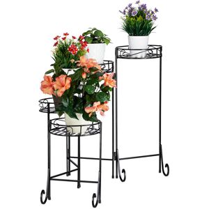 This metal flower stand with 6 tiers provides the necessary space to present your plants decoratively. Colourful petals, herbs and other plants can be ideally highlighted this way. With its romantic design and stylishly curved shapes, this metal paravent is also quite the eye-catcher in- and outdoors. Be it as plant stand on your balcony or patio, room divider in your living room or rack for your kitchen - this folding plant shelf mesmerizes with its playful vintage charm. Flower Stand Details - Height: app. 140 cm - Width per panel: app. 20.5 cm - Size folded: H x W x D: app. 140 x 21 x 17.5 cm - Weight: app. 3.4 kg - Material: Powder-coated iron - Colour: Black Plant Rack Dimensions - Shelves panel 1: app. 7 and 52 cm - Shelves panel 2: app. 37 and 82 cm - Shelves panel 3: app. 22 and 67 cm - Slot diameter (top): app. 17 cm - Slot diameter (bottom): app. 13 cm - Maximum capacity per tier: app. 5 kg Decorative Metal Paravent for Potted Plants - Present flowers, herbs and more in
