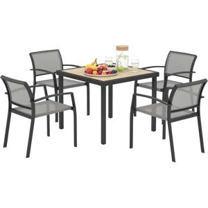 Sit outdoors with friends, thanks this Outsunny set of four stackable gardens. The high back and armrests support your body. The breathable mesh fabric is comfortable. The stackable design makes it compact for easy storage. A set to bring your favourite people together outdoors. OUTSUNNY Set of 4 Garden Dining Chair Set Outdoor with High Back Armrest in Beige Size: 4 Pack
