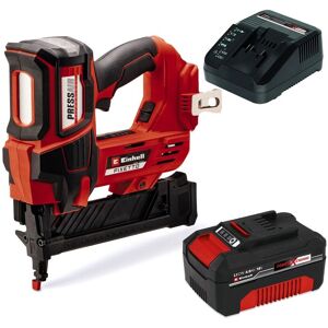 The Einhell FIXETTO 18/38 S is an 18v cordless staple gun which is part of the Power X-Change system and can be used with any Power X-Change battery. It features Einhell's maintenance-free PressAir technology and can fire up to 60 staples a minute for rapid work progress. Ideal for applications like upholstering furniture, fastening insulation and putting up fencing materials, the FIXETTO 18/38 S can fire in single or series mode and is suitable for use with 10-38mm long and 5.7-15mm wide staples. Depth adjustment control is provided so you can set the depth the staples are driven in to, and twin LED worklights provide excellent visibility of the work area. The slim design is coupled with ergonomic softgrip padding for comfortable handling, and a belt clip is included for conveniently hooking the stapler in between uses. For safety, the machine has a safety nose which prevents accidental firing of staples. Features & Benefits • Member of the Power X-Change family • PressAir technology: Maintenance-free, without extra costs & equipment • Robust gearbox for durability • Single or series firing modes • Safety nose • Large magazine with fill indicator and space for 100 staples • Depth adjustment control • Twin LEDs illuminate the work area • Rubberised side surfaces prevent scratching the work surface during use • Supplied with a belt clip and a starter pack of 500 staples Specifications • Battery Voltage: 18v • Battery Type: Power X-Change • Maximum Staple Length: 38mm • Minimum Staple Length: 10mm • Magazine Capacity: 100 • Motor Type: Brushed • Machine Weight: 2.82kg Contents • FIXETTO 18/38 S Cordless Staple Gun • Belt Clip • Staples (x500) • Einhell 18v Power X-Change Li-Ion Battery 2.5ah • Battery Charger • No Case