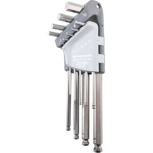 Facom: 83SHST.JP9A 9 Piece Hexagon Key Set This 9 piece metric long length stainless steel hex key set comes with a plastic indexed clip and a storage wallet. Each key is manufactured from stainless steel for durability, and has an L-wrench design. Completed by a 30 ball for deep set fasteners in hard to reach places. Features and Benefits Ideal for deeply set fasteners due to the long reach design Manufactured from stainless steel for maximum durability Supplied in a plastic storage clip that is indexed for instant identification of the correct tool 9 piece set ensures you have the correct tool to hand no matter the application 30 ball head for allows for access in confined and restricted spaces Contents 1.5, 2, 2.5, 3, 4, 5, 6, 8 and 10mm Typical Applications Furniture Assembly Bicycle Repair and Maintenance MPN: 83SHST.JP9A EAN: 83SHST.JP9A 9 Piece Hexagon Key Set Attributes: Handle Style: L-Handle Insulated: No Metric or Imperial: Metric Number of Pieces: 9 Tip Size: 2mm 3mm 4mm