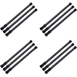 Adjustable telescopic rod from 16 to 28 inches. [Scope] Suitable for bathroom, shower stall, bathtub, changing room, closet, window opening, etc. Strong enough to hold shower curtains, window curtains, clothes and other items. [Easy Installation] Extend and rotate. No tools required. Free drilling. Without making holes in your wall. Color: Black Material: High-grade steel + plastic Size: 1.3 cm in diameter Package Contents: 12 x Tension Rods Only the above package content, other products are not included. Note: Light reflection and different displays may cause the color of the item in a little different from the real thing. The measurement allowed error is +/- 1-3 cm.