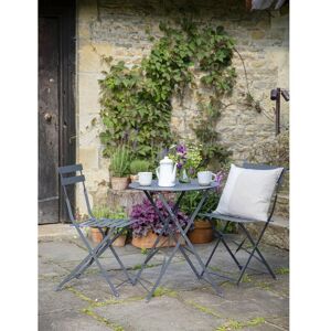 This classic French inspired Rive Droite Bistro Set is designed for any sized space, from courtyards to patios and balconies. Fully foldable. Bright and bold colours. Great for that first cup of tea or spot of lunch, why not use indoors too in the conservatory or kitchen? Fully assembled. Suitable for indoor and outdoor use. Colour: Carbon. Crafted in Powder Coated Steel. Weatherproof. Set folds flat for easy storage. Weight limit for Chairs: 120kg. Weight Limit for Table: 40kg. We recommend that all outdoor furniture is covered or stored under cover if left outside for long periods of time or during the winter months. Ensure that the furniture is completely dry before covering.