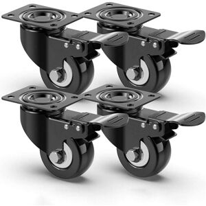 SAVE YOUR EFFORT AND RELIEVE YOUR BACK: Do you push or carry your furniture? Take the strain off your back and save your energy by installing these new casters to move heavy loads. Discover how easily and effortlessly you can move your furniture. RELIABLE FURNITURE CASTERS FOR HEAVY DUTY (SET OF 4): The furniture casters are made from premium materials, a solid and stable design, making them the most resistant in their category. The swivel wheels can rotate at 360 degrees smoothly and quietly. FLEXIBILITY AND SAFETY: Heavy duty polyurethane (PU) casters combine the elasticity of rubber wheels with the strength and durability of metal wheels. Casters with brakes are suitable for all types of floors. The load capacity is 200kg (50Kg per wheel). ENJOY SMOOTH AND QUIET BEARINGS: Furniture casters have internal bearings that allow for smooth rolling, with a smooth surface that prevents hair, crumbs and gravel from becoming embedded. The set consists of: 4 Heavy Duty Furniture Casters with