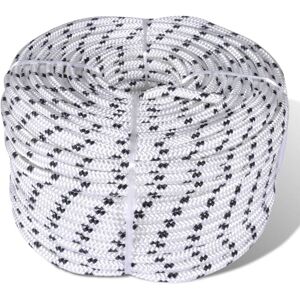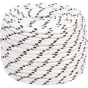 The braided polyester rope is widely used in marine as well as general purpose applications, being ideal for use as rigging lines, main sheets, jib sheets, genoa sheets, tent guy wires, washing lines, etc. The polyester rope has a high strength, but is of low stretch. In addition, it also has a good UV, abrasion and chemicals resistance, to ensure a long term use. Please note that this rope has a braided sheath but the core strands are not braided. Colour: White Material: Polyester Thickness: 10 mm Length: 250 m Breaking strength: 550 kg Working strength: 110 kg UV resistant and abrasion resistant Good salt water, acid and petroleum resistance High strength and low stretch Not suitable for climbing,for lifting goods/loads or for using as a swing/a part of a swing. Fabric: Polyester: 100%