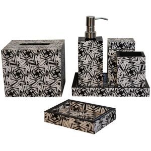 This lovely coordinated bathroom set brings a stylish contemporary design to home decor, featuring an aztec printed design this set is bound to brighten up your bathroom. The 6 piece set includes a soap dispesnsor, cotton box, soap dish, toothbrush holder, tissue box and a tray. This product is handcrafted individually and as every piece is unique please do expect variations in finish, texture, size and should not be considered as a defect. Rosalind Wheeler