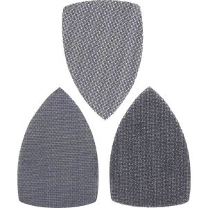 Measuring 93x230mm, the third-sheet dimensions strike a balance between coverage and control. This size is versatile enough to handle both large surface areas and intricate details, providing you with the flexibility needed for diverse projects. The convenient third-sheet size is compatible with various sanders, offering adaptability across different tools and ensuring you can achieve professional results with ease. The innovative mesh construction of these sanding sheets enhances durability and longevity. The open-weave structure minimizes clogging, allowing for consistent performance over the lifespan of each sheet. Features & Benefits • Silicon carbide – Tough abrasive material for superior sanding results • Anti clogging mesh surface reduces the need to change sheets as often • Open weave structure enables more effective removal of sanding dust, less mess and a finer finish • Universal fit so no need to worry about punched hole configuration • Fits third sheet sanders • For all basic, intermediate, and final sanding applications in wood, metals, paints, varnishes, and dry wall Specifications • Width: 93mm • Length: 230mm • Grit: 120 • Quantity: 3