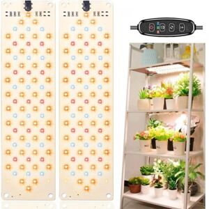 DIY Grow Light: The DIY indoor LED plant light features two ultra-thin panels. Flexible for different length or width adjustments. You can hang the plant light panels with the convenient cable ties or hide them under shelves/cabinets with the 3M double-sided tape. Full Spectrum LED Grow Light, 158 LEDs, high-quality super bright LEDs, spectrum from 380nm to 780nm, including red and warm white. Plant growth lights can provide plants with a diverse light spectrum to promote plant growth. Auto-off & Timer Function: The plant light has an auto-off timer function and a USB plug (power supply included) to promote plant growth. 3/9/12H timer setting options can be set according to the needs of the plant, set high level once, it will automatically turn on and off every day HIGH PPFD ENERGY SAVING - 2 downlights only use 15W, saving up to 50% energy compared to other recessed LED spotlights. The dimensions of a hanging grow light are rectangular: 30 x 8 cm, which can greatly improve the light