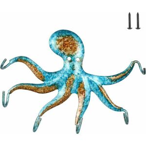 Octopus wall hook iron coat hook animal craft 6 hooks for coats bags accessories coat rack wall decoration handmade sturdy and durable suitable for outdoor indoor and outdoor: Features: Octopus hook: The Octopus hook has a particular shape and a very beautiful color: dark blue. it is decorated with brown stripes, showing a rich, natural and vivid texture. Material: Using iron materials, the back of the hook has a thick wire skeleton, which is hand-welded by professional craftsmen, which makes it more sturdy. Process: The surface of the hook is treated with paint and anti-rust technique, which is smooth, beautiful and durable. Versatile: The octopus hook can support the weight of coats, towels and bags. For use in the bedroom. before bedtime, it can also be perfectly toned. with your necklaces and other accessories, to keep your home clean and tidy. Installation: Screws on easily; on the bedroom, hallway or garden wall. It is a beautiful addition to any occasion; House. Package