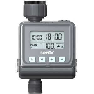 Programmable Water Timer For Outdoor Hose Built-In High Sensitive Rain Sensor To Prevent Over Watering 3 Customisable Water Plan And Manually Watering Mode Customise Watering Frequency And Watering Duration Big LCD Display Shows Watering Time, Frequency, Power And Etc Operating Water Pressure 0.5-8bar With 5L - 35L/min Flow Rate Smart Time Reminder For Next Auto Irrigation IPX4 Waterproof, Durable And Sturdy Battery Operated, Long Endurance For Long Battery Lifetime Low Power Protection, Auto-Shut Off Valve To Avoid Leakage And Water Saving Specification Product Size: 153 x 105 x 74mm Working Water Pressure: 0.5bar-8bar (7 psi-116 psi) Max Flow Rate: 5 - 35L/Min Waterproof Level: IPX4 Working Temperature: 37.4℉-122℉ (3℃-50℃) Watering Frequency: Every 1-12 Hours or Every 1-7 days Watering Duration From 1 seconds to 300mins (5 hours) Water Inlet: BSP(EU) For 3/4" or 1" Taps Water Outlet: For 3/4" Standard Garden Hose Power By: 2x AA Alkaline Batteries (Not Included)