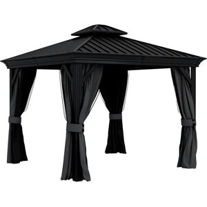 This garden pavilion from Outsunny is a must for creating the perfect party atmosphere. The aluminium frame, paired with the galvanised steel canopy means a strong and sturdy standing place. The curtains and netting create a comfortable and safe space. Set up this hard roof gazebo in the garden for anything you like - BBQs. special events and all day gatherings with friends.