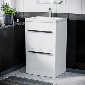 Description Engineered with everyday use in mind, providing a storage solution for your bathroom, our Basin Vanity Unit gives you the best of both worlds, combining incredible durability and a beautiful gloss finish. This white gloss vanity units feature soft closing doors with a chrome bar handle and a high-quality ceramic basin. Key Features 100% moisture resistant MDF construction Stylish storage unit, combining a built in stone resin basin with the practicality of storage drawers for all of your bathroom essentials Luxurious gloss finish, perfect for contemporary bathrooms with sleek curved edges Specifications Style: Contemporary Vanity Height: 800mm Vanity Width: 495mm Vanity Depth: 385mm Basin Width: 510mm Basin Projection: 396mm Material: MDF Handles: 2 Door Hinges: Soft close Basin Included: Yes Basin Finish: White Basin Material: Ceramic Tap Hole: Single Overflow: Yes Mounting Type: Floorstanding Tap & Waste: Supplied separately Supplied Flat Packed Package Contents Basin