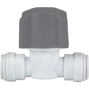 JG Speedfit stop valve allows the user to stop the flow of water to a fixture or zone in the event of an emergency or for repair work. Simply push the valve fully onto the pipe. To demount the push-fit end, pull the collet towards the body of the push-fit fitting and pull the pipe to release. The push-fit fitting is quicker and easier to install in confined spaces than traditional methods as it eliminates the need for hot works or tools. Designed, manufactured and assembled in the UK. Compact design is ideal for installing in areas where space is tight Instant push-fit connection and screw down mains stop valve Install and demount in seconds without tools Safe flame-free installation, with no hot works, glue or flux Grip & Seal collet with stainless steel teeth and main O-Ring seal Compatible with Speedfit PEX and polybutylene plastic pipe (inserts required) and copper pipe Suitable for hot and cold water (not suitable for central heating systems)